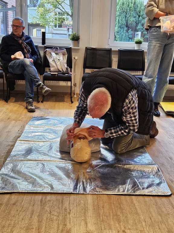 Wie bekannt, ist jeder erwachsene Bürger aufgefordert, im Notfall Erste Hilfe zu leisten. Dabei ist der sicherlich bei Jedem vorhandene Gute Wille hierzu oft gepaart mit Unsicherheit und Angst im Notfall etwas falsch zu machen. Die Teilnahme und Unterweisung in einem Erste Hilfe Kurs soll uns die nötige Sicherheit und Ruhe vermitteln, auch und gerade in entsprechenden Situationen auf unseren Rad-/Wanderungen hilfreich zu reagieren; etwa nach Stürzen oder bei Erschöpfungszuständen. Und wer wüsste es nicht, wir können nicht Alles behalten, deshalb sind regelmäßige Auffrischungen angesagt.
